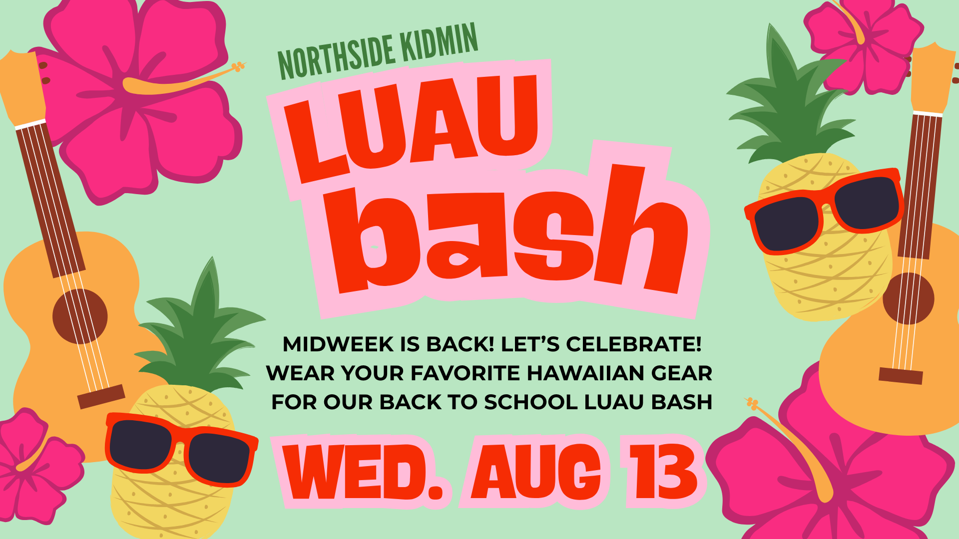 Aloha, new school year! Kids in PreK–6th Grade are invited to wear their best tropical attire for our first MIDWEEK back and join us for a fun luau-themed evening in Kids Ministry. We’ll celebrate the start of school with games, treats, and reminders that God goes with us wherever we go!